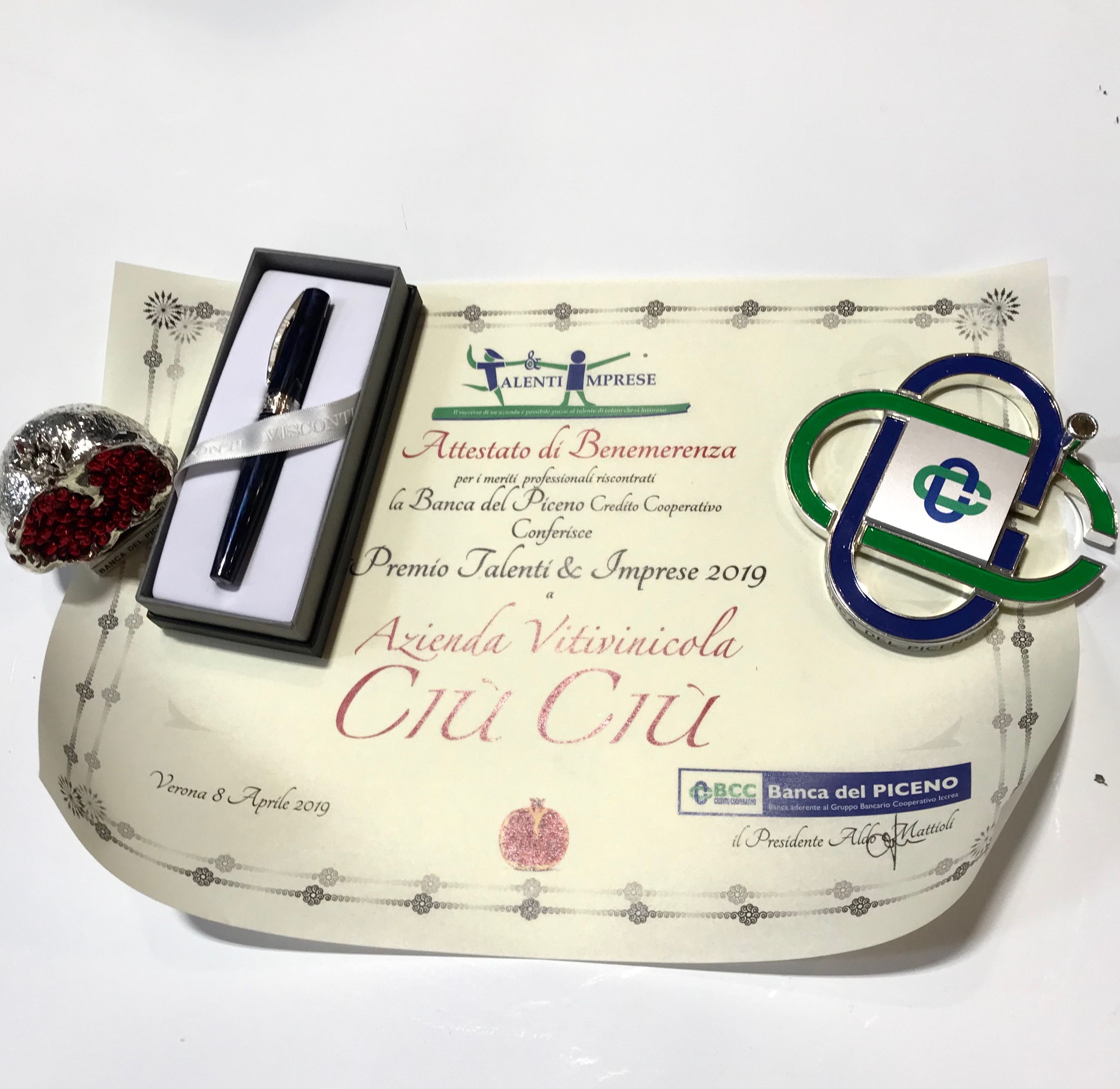 “This recognition makes us particularly happy and proud, because we receive it from an important bank in the Piceno area, and because it is a symbol of how fundamental it is to cultivate talent in the territory where we are born. – says Walter Bartolomei – This has always been the philosophy of Ciù Ciù, so it is extremely gratifying to see it rewarded. “” We are proud – declared the deputy director of the Banca del Piceno Francesco Merletti – to reward one of the picene wineries that most embodies the authentic expression of the territory and the territory has given voice with a wide range of wines “.